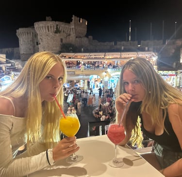 ’s Avonds gingen we nog even naar de oude stad van Rhodos en dronken een mocktail op het gezellige drukke plein.